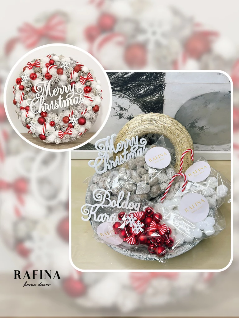 A csomagban megtalálható: Termés, koszorúalap, gömb, felirat, figura . A Rafina termékei (kopogtatók, asztaldíszek, rózsaboxok, stb.) egytől egyig mind kézzel készült, nem sorozatgyártottak. Előfordulhat, hogy egy-egy termék limitált számban kapható, ezért érdemes a kiszemelt darabot minél hamarabb megrendelni. Az elkészítésük során, minden termékre nagy figyelmet fordítunk és gondosan ügyelünk, hogy a végeredmény minőségi darab legyen. Az ajtódíszek és kopogtatók esetén, tudd, hogy rendelkeznek egy akasztóval, úgy ahogy egy képkeretnél az megszokott. Továbbá, minden kopogtatót, egy dekoratív akasztó szalaggal is ellátunk, hogy kézhezvétel után a kopogtatót azonnal fel tudd helyezni az ajtóra.